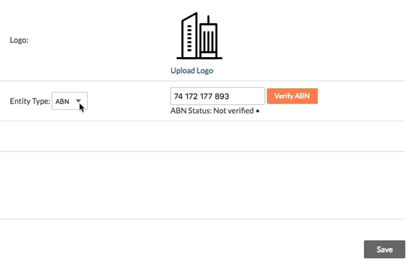 - Dans le menu déroulant Type d'entité, sélectionnez ABN.