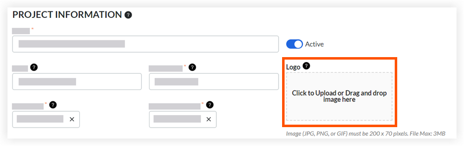 - Dans la section « Informations sur le projet », chargez le fichier du logo en cliquant sur l'espace sous Logo ou en glissant-déposant le fichier de votre ordinateur dans l'espace.