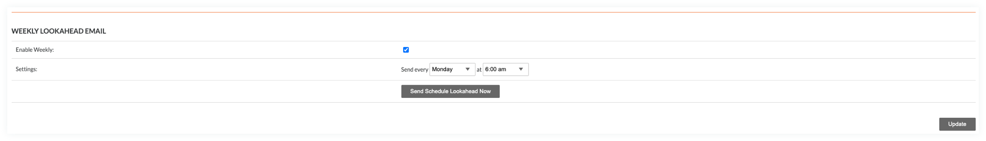 icône permettant d'envoyer des e-mails hebdomadaires à des utilisateurs spécifiques en affichant toutes les tâches du planning à venir sur le planning de prévisions. - Choisissez les données de jour et d' heure qui seront envoyées chaque semaine.